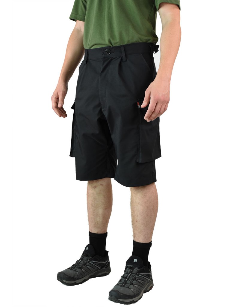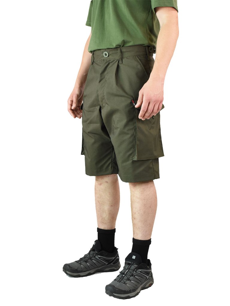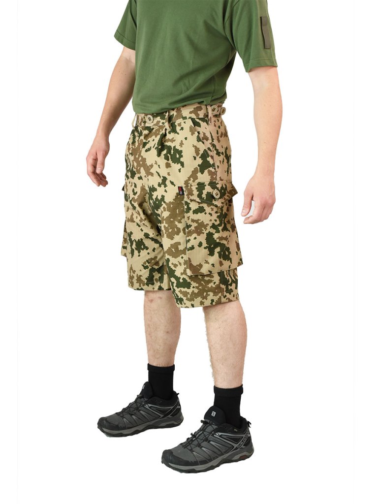 Design is based on British Army combat shorts, which are well-proven and contain several functional details. The mouths of the spacious thigh pockets fold around themselves and prevent items from falling. Fastening with resistant strap buttons. Drawstring at the waist and loose sizing increase comfort.