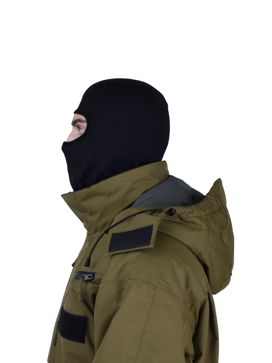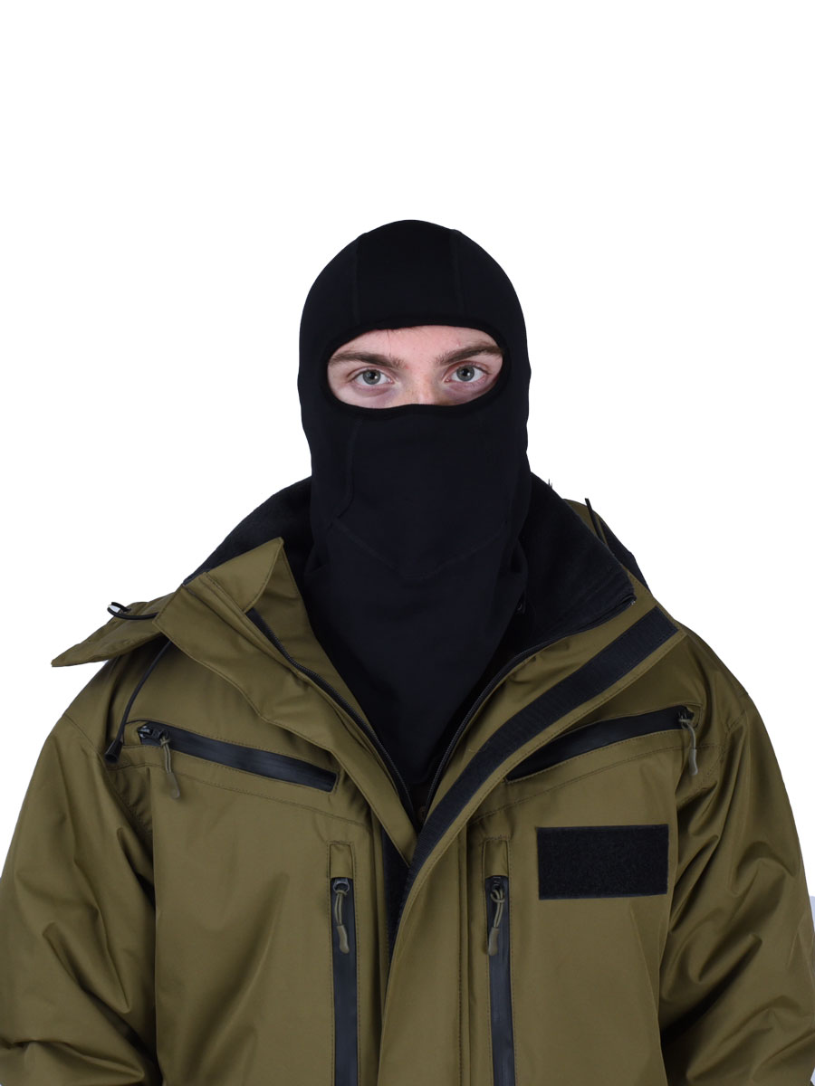 The fabric for the balaclava is composed of two fibrous materials, which are combined to complement each other. Merino wool has a heat-insulating fiber and Cordura polyamide yarn is on the surface to provide abrasion resistance. The 100% merino wool which is against the skin in the garment is a soft 19 Micron strong merino sheep’s wool that does not contain artificial fibers. The seams are flat-lock seams to make the garment comfortable to wear under a helmet or a hat.