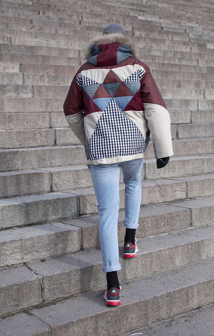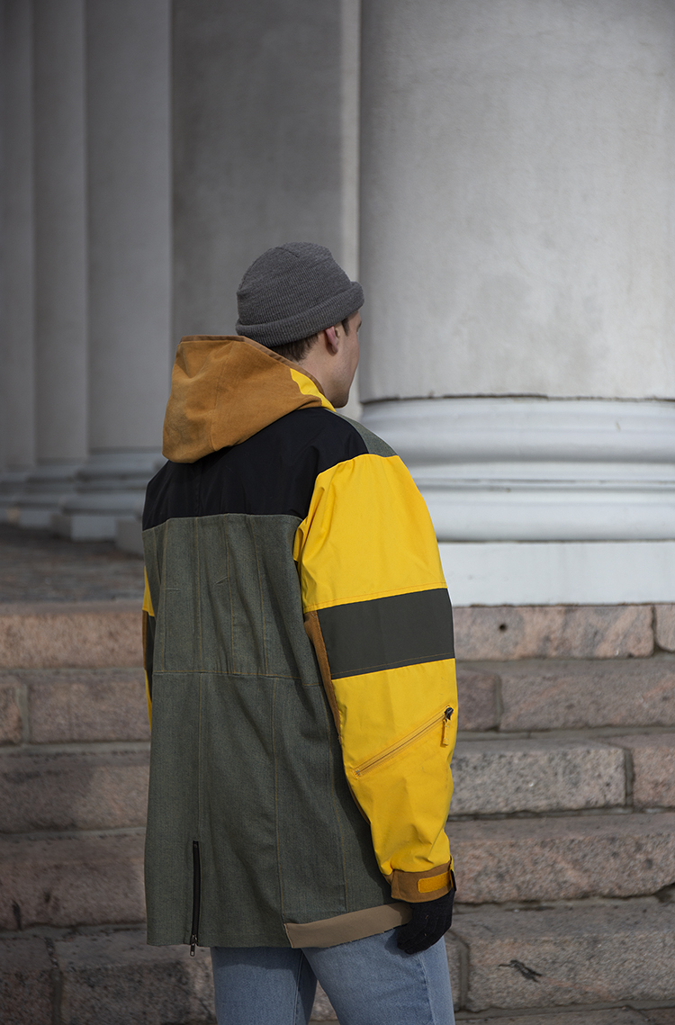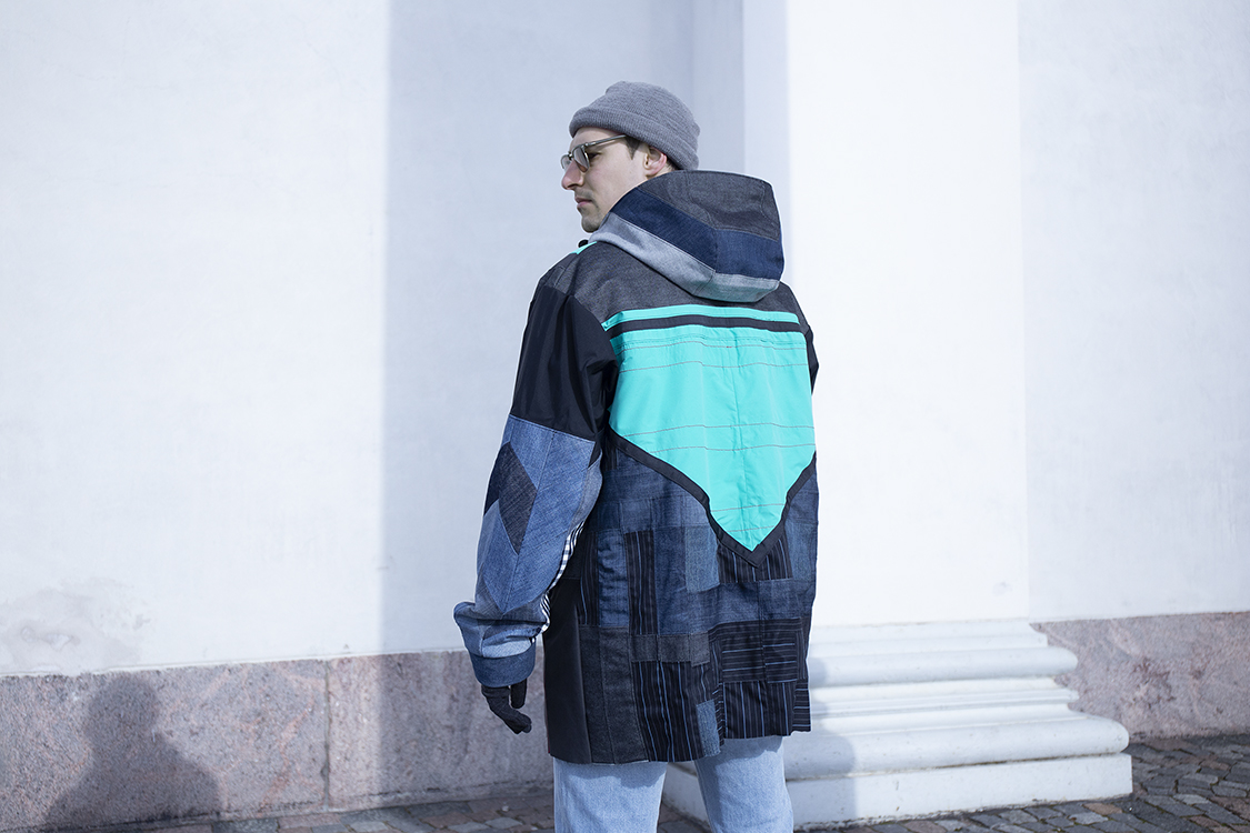 Renaissance – is a new becoming of old clothing and leftover fabrics in a form of unique, arty garments. Renaissances’ inspiration well from the roots of Japanese quilt work, streetwear and the styles from legendary Star wars film characters. The garments have also a similarities with snowboarding outerwear and the fabrics used are old worn snowboarding apparel and worn jeans. Logo design was made in co-operation with my designer colleague Antti Bergman and leather patch logos were executed by an Estonian leather art&craft design studio Fury Art.